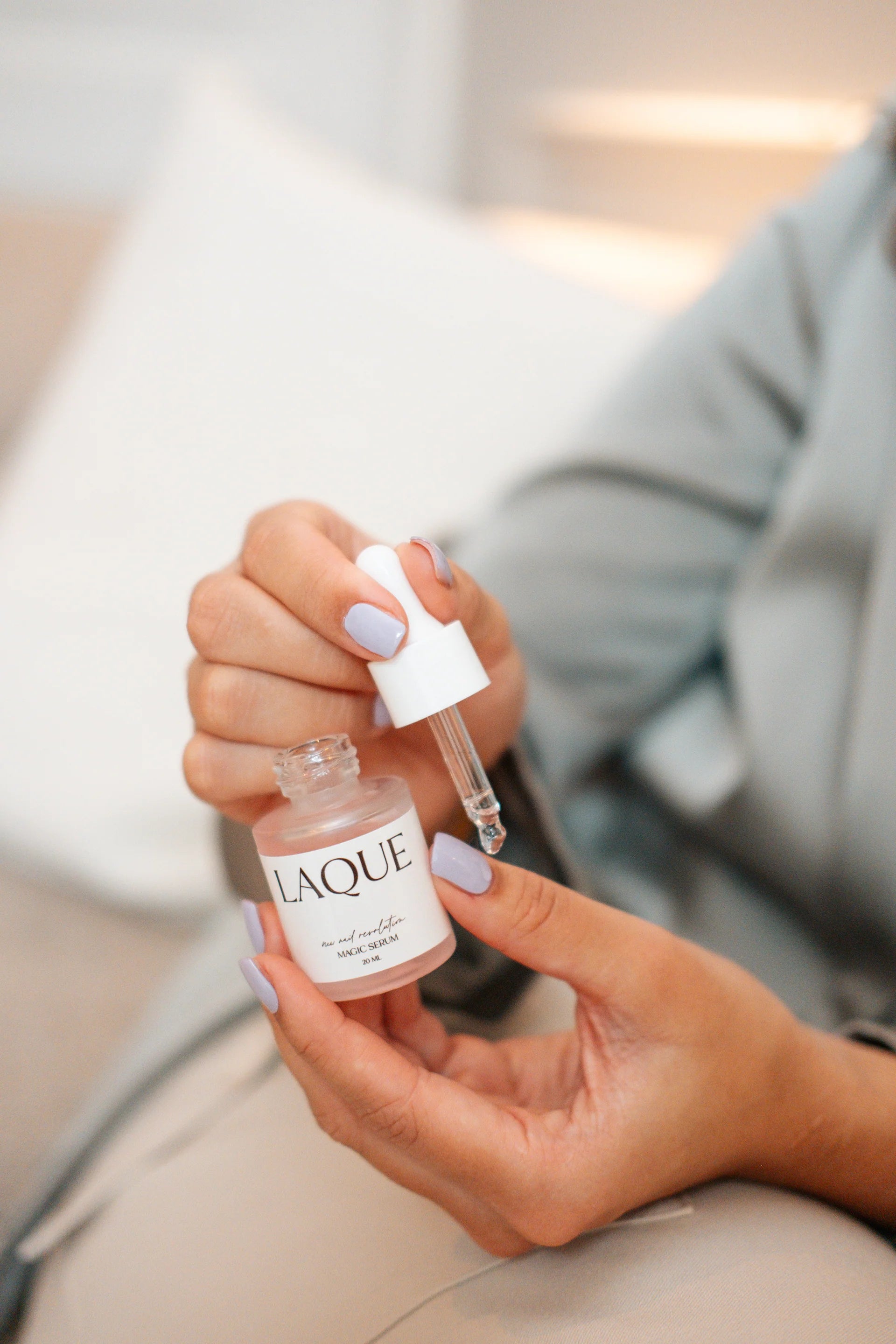 2. Care: Condition your cuticles with the Magic Serum. Applying a new set? Make sure your nails are dry and degreased.
