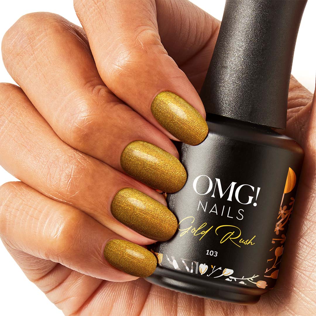 Laat je nagels schitteren met de betoverende allure van OMG “Gold Rush”. Deze gellak roept een gevoel van zelfvertrouwen en stijl op, passend bij een trendy glitter jurk of een elegante gouden top. Combineer deze kleur met een delicate gouden armband of een paar opvallende oorbellen voor een complete en sprankelende look.